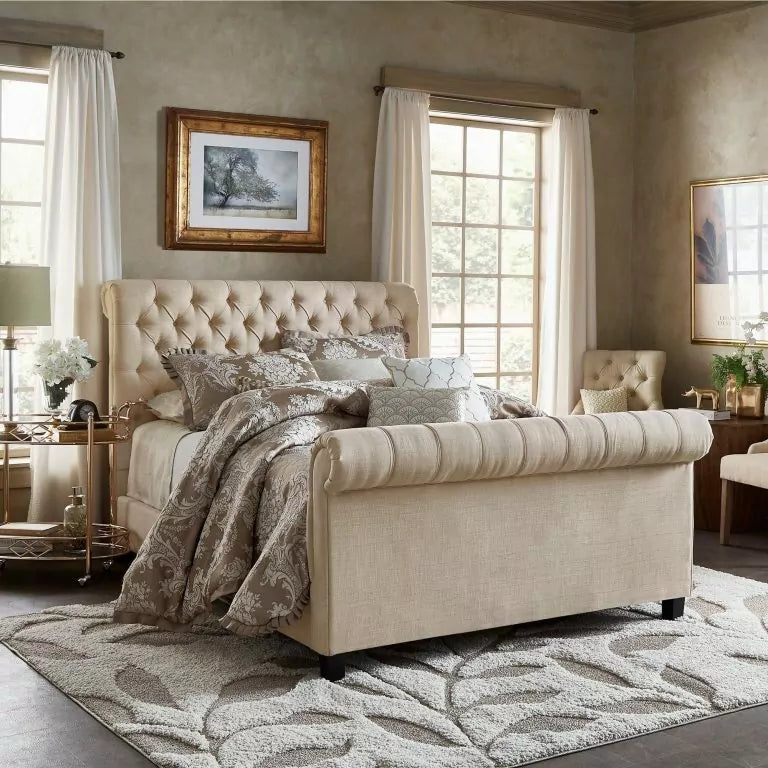 Olivia Panelled Sleigh Chesterfield Bed Frame