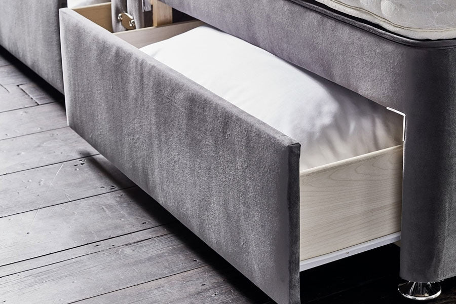 Optimize your bedroom with SnoozyNights Divan Beds! Select from 2 or 4 spacious drawers to keep your space neat, organized, and clutter-free.